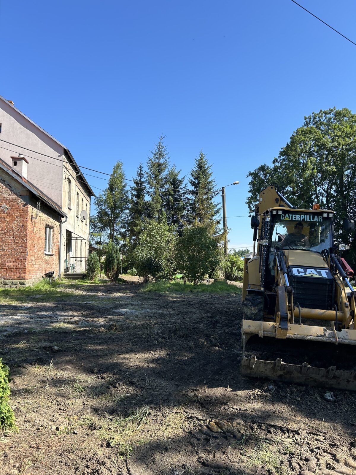 Starą oczyszczalnie z betonu rozkuliśmy, a w jej miejsce po odpowiednim zagłębieniu wykopu wstawiona została nowa oczyszczalnia Rotoset do 18 RLM. Z uwagi na wysoki poziom wód gruntowych prace przebiegały szybko, a zbiornik został dodatkowo zabezpieczony przed wypchnięciem z ziemi.